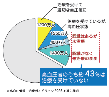 日本人(成人)の約3人に1人が高血圧と推定されていますが、正しくコントロールが出来ている人は、実は多くはありません。