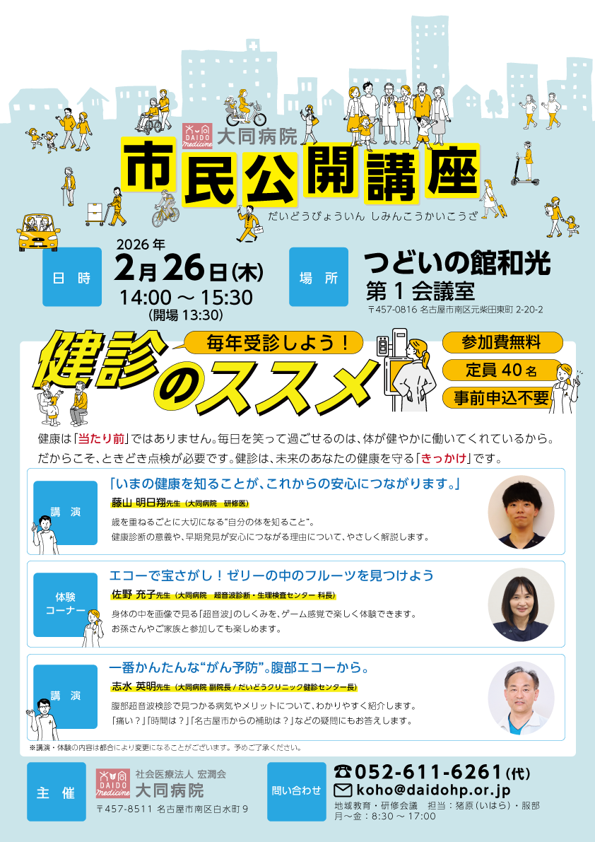 宏潤会では、地域の一般の皆さまやともに医療やケアに取り組む皆さまを対象としたイベントを随時、開催しております。