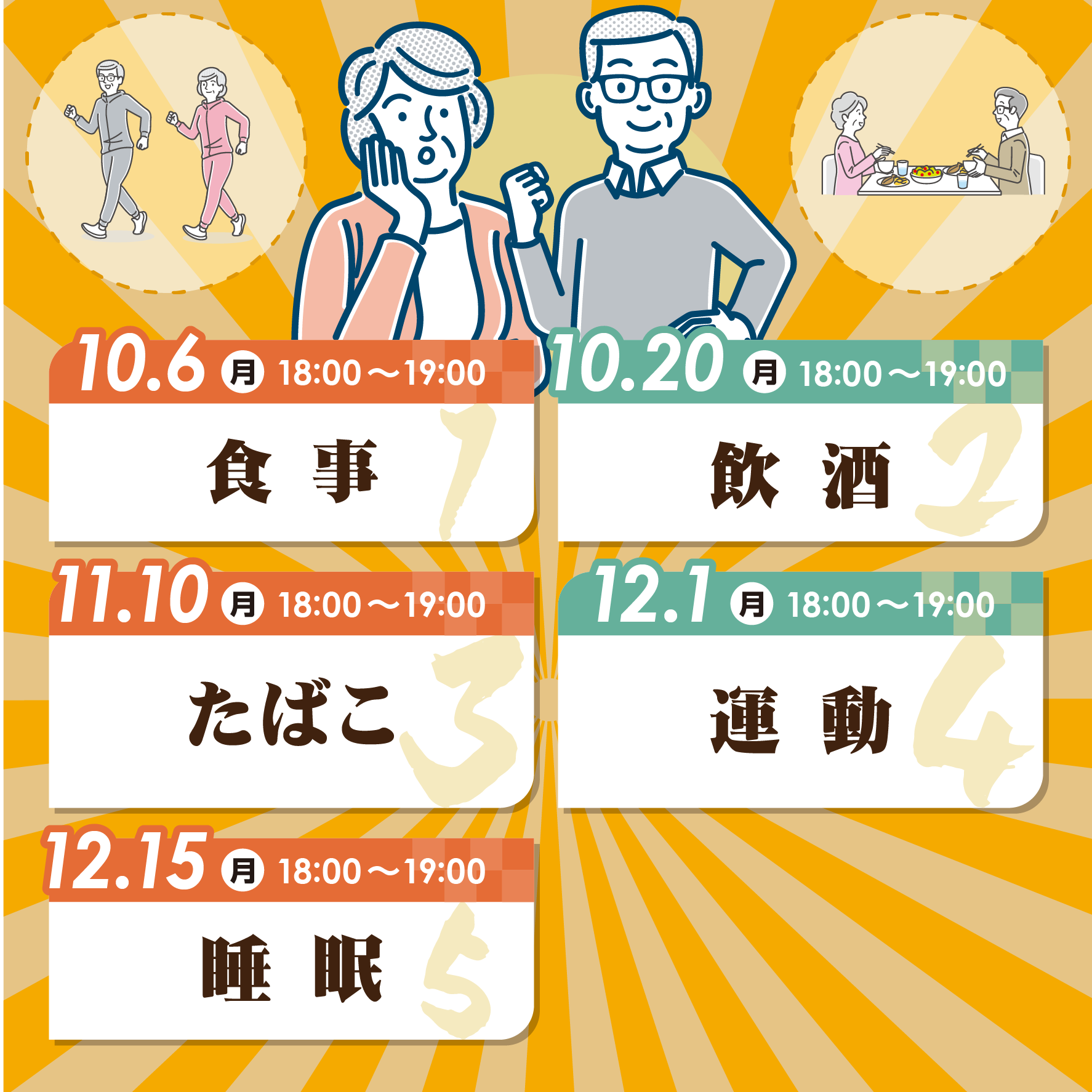 そんなあなたに、自分の健康習慣を振り返り、10年後の元気な自分をデザインするヒントをお届けするセミナーです。医師の解説や参加型ワークショップ・クイズを交えて、楽しく学びながら自分の習慣を見直せます。