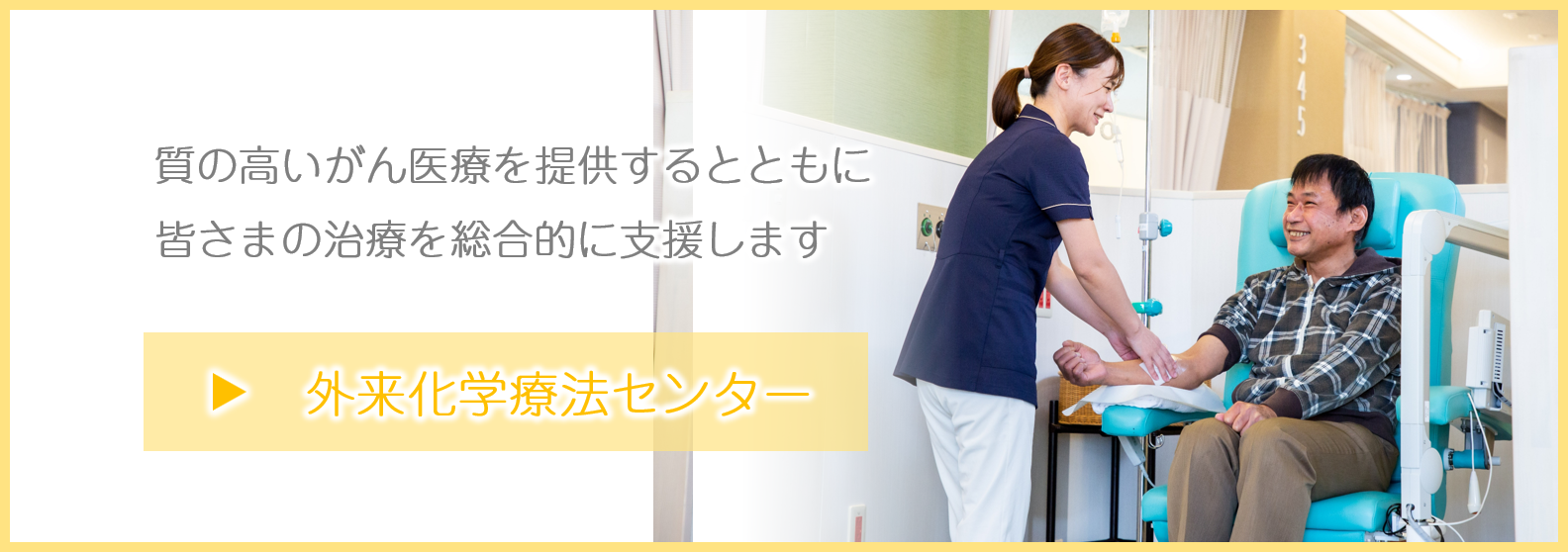 化学療法(化学物質を使った薬物療法)は、新しい薬の開発や副作用の対策がすすんだことにより、日常生活を送りながら、外来で安全に行うことができます。当センターでは悪性腫瘍に対する抗がん剤治療に加え、膠原病や炎症性腸疾患に対する点滴治療も行っています。