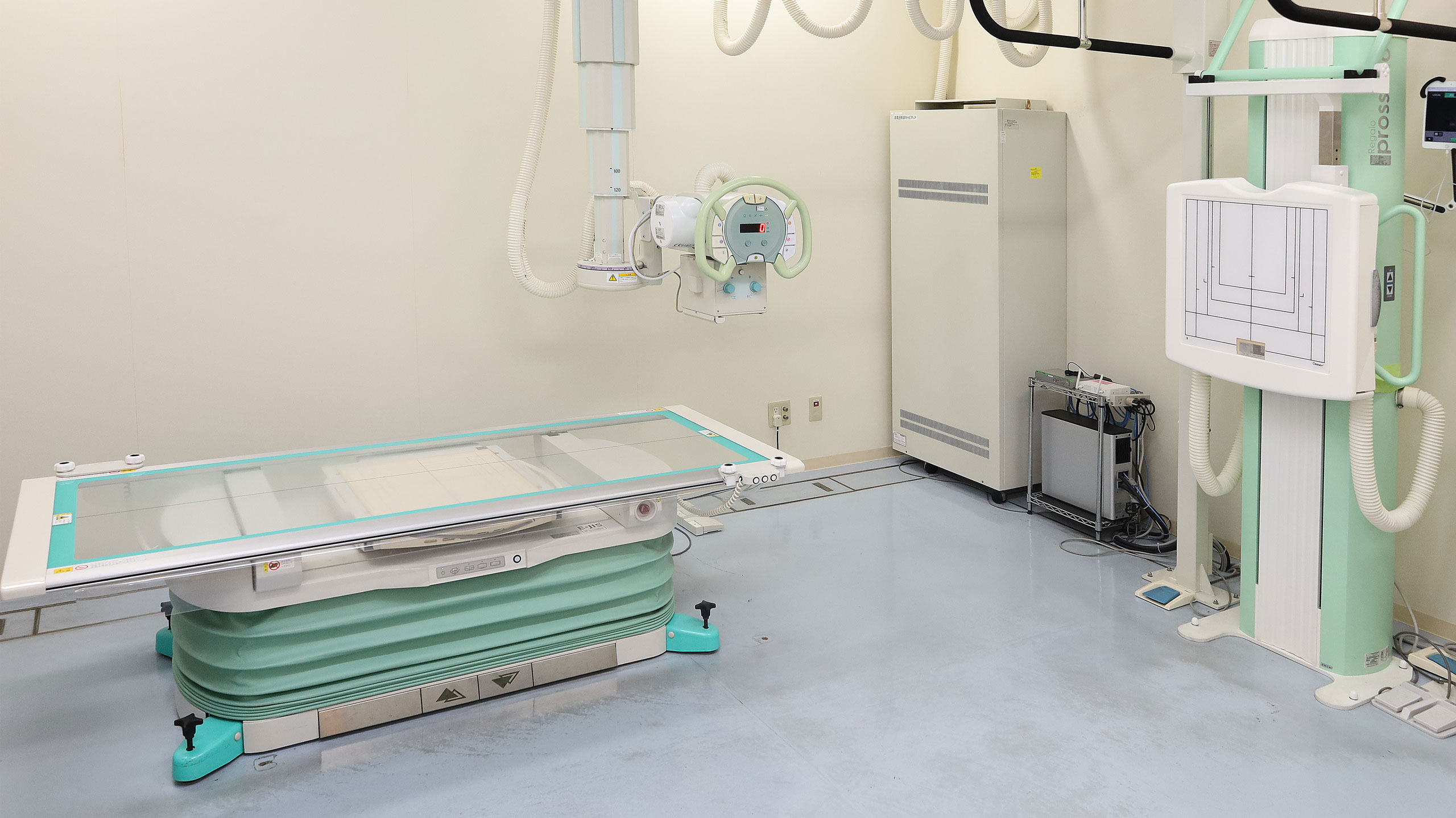 FPD(フラットパネルディテクター)搭載の一般撮影装置を導入したことにより、即時性が向上し、検査の時間を短縮することが可能となりました。また低線量撮影が実現し、従来の約半分の被ばくで撮影ができます。