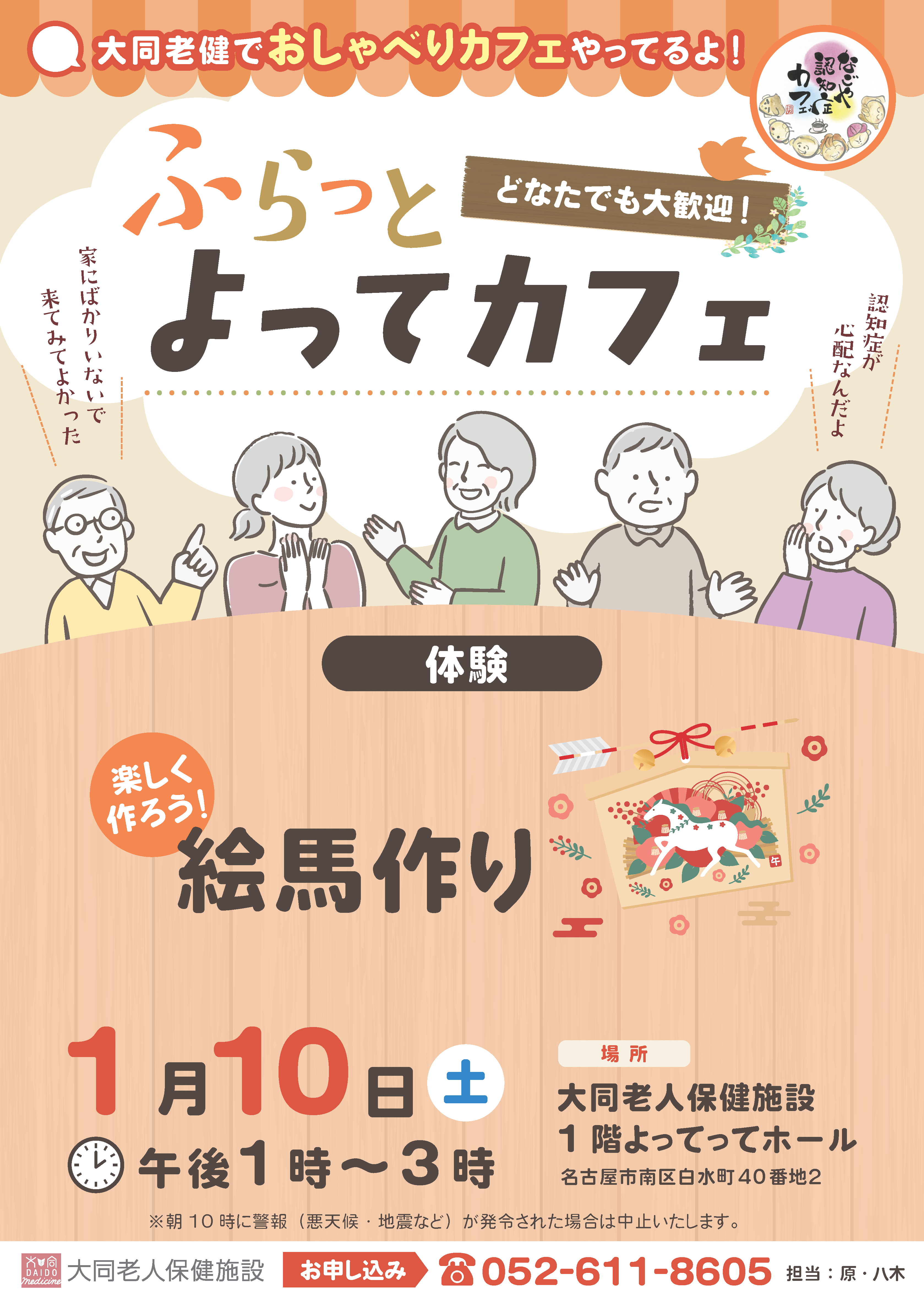 大同老人保健施設では定期的に「認知症カフェ」を開催しています。