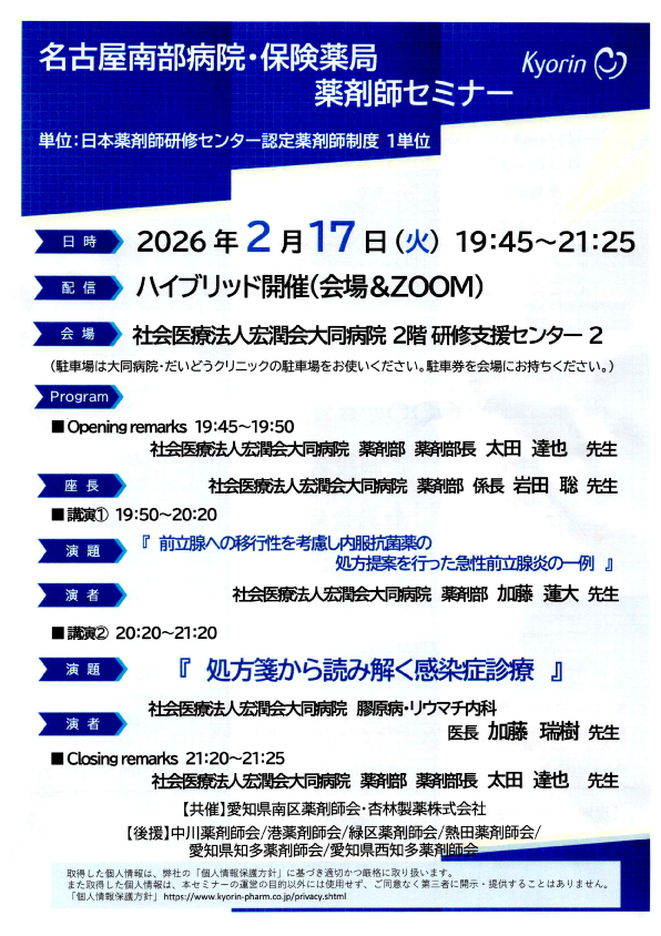 - 名古屋南部病院・保険薬局 薬剤師セミナー
